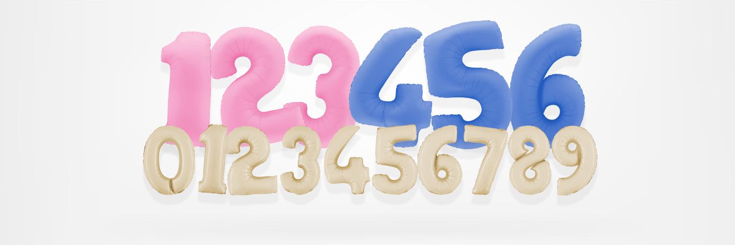 Nu utökar vi vårt sortiment av 86 cm ballongsiffror med tre nya färger: Baby Pink, Baby Blue och Satin Creme.