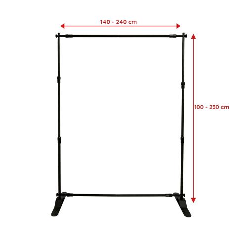 Med en justerbar bredd mellan 140 - 240 cm och en höjd mellan 100 - 230 cm är detta flexibla teleskopstativ ett utmärkt tillbehör för att bygga ballongväggar och ballonginstallationer. Stativet är ett utmärkt komplement till våra Pillow Balloons.