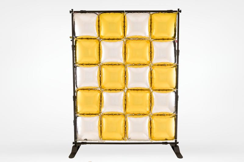 Ballongerna fylls med luft med hjälp av en ballongpump. Knyt ihop ballongerna med varandra med hjälp av knytpunkterna i hörnen för att bygga en stor ballongvägg eller liknande.