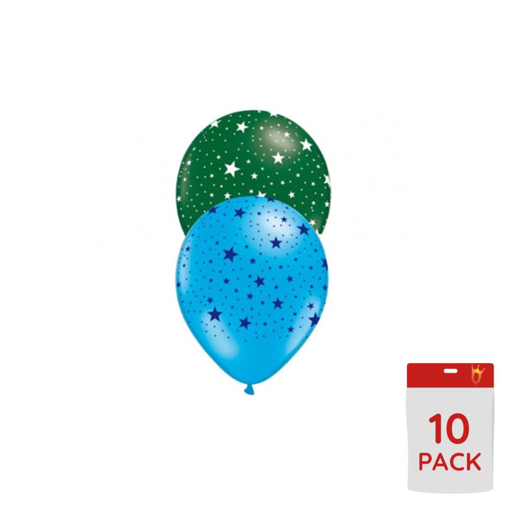 Ett paket med ballonger prydda med stjärnor. 10-pack.