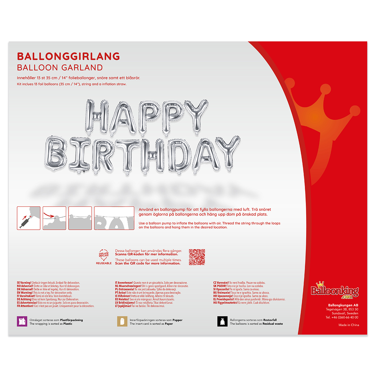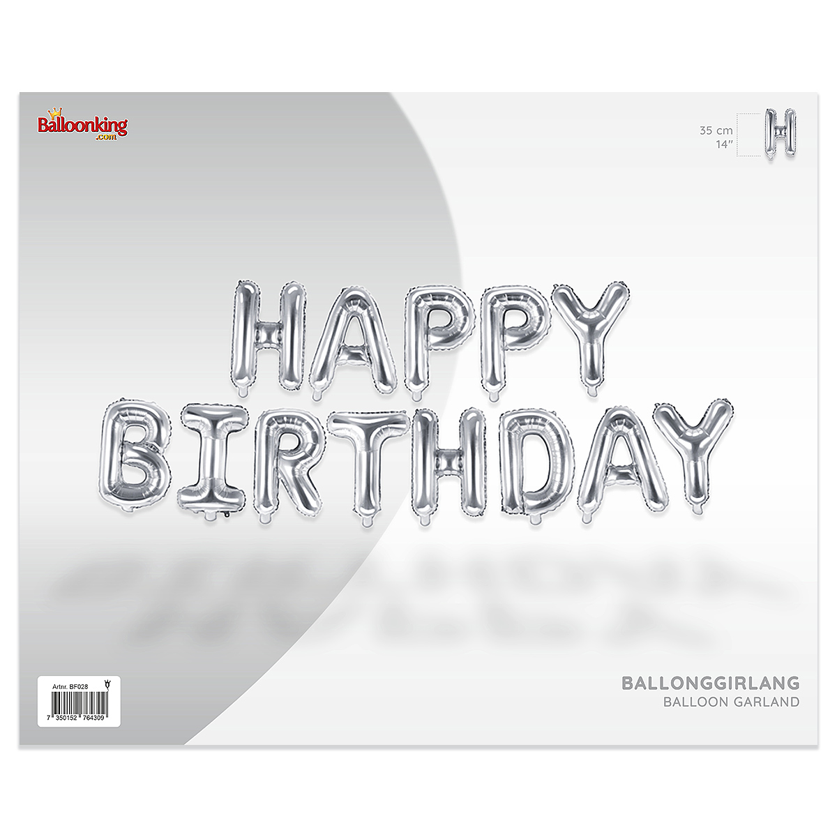 Ballonggirlang - HAPPY BIRTHDAY Silver 35 cm